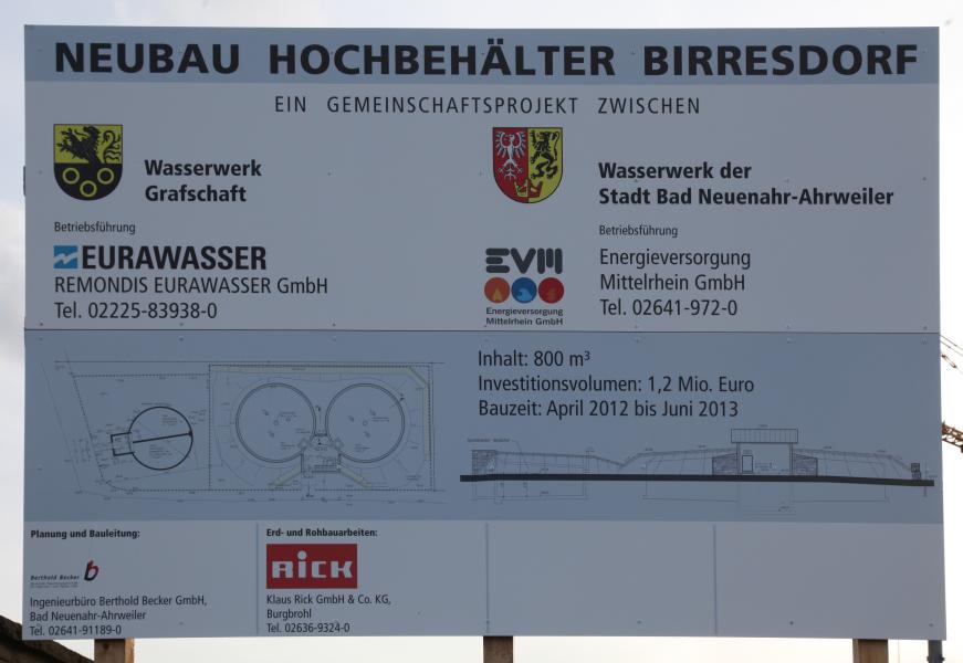 | 19:19, 6. Jun. 2012 | 2012-06-05-Neubau Hochbehaelter Birresdorf.jpg (Datei) | 55 KB | Andreas Thun | {{Information |Beschreibung = Infotafel zum Neubau des Trinkwasserhochbehälters |Datum = 05.06.2012 |Quelle = Eigene Aufnahme (bearbeitet) |Urheber = Andreas Thun |Lizenz = {{CC-BY-SA}} }} Kategorie:Datei:Foto | 1 | |