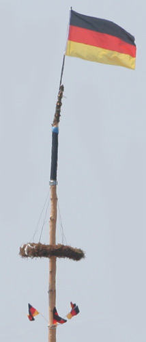 Der zum WM-Baum umfunktionierte Maibaum